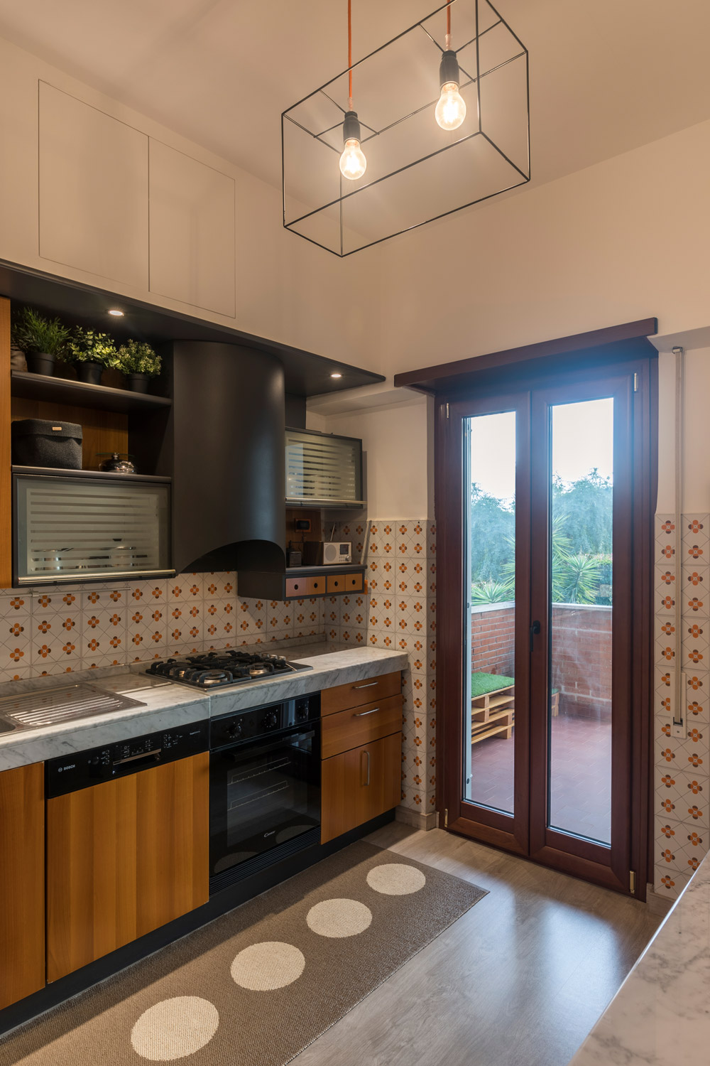 Il progetto di interior design di Casa Marea 14 nasce dal desiderio di Daniele, il proprietario, grande sportivo, pescatore amante della natura, di esprimere la sua personalità anche attraverso la sua abitazione. Dopo averlo conosciuto e creato con lui un' empatia, ho capito che per progettare ambienti in cui Daniele potesse sentirsi a proprio agio il concept doveva essere focalizzato sull' idea di fare entrare la natura dentro la sua casa. Daniele avrebbe dovuto ritrovare dentro le mura domestiche il suo modo di essere e stile di vita. Per questo ho ricreato sulle pareti prati verdi e boschi di castagno, acque cristalline e cieli stellati. Per fare questo ho utilizzato pitture dai toni caldi, l' azzurro per mare, il grigio per la montagna; ho decorato alcune pareti di casa con tronchi di albero e prati sintetici; ho puntato su un arredamento minimal ed essenziale scegliendo mobili in legno e ferro. Un angolo di casa con il miglior affaccio sulla valle dei Casali è stato dedicato esclusivamente all' attività fisica indoor.